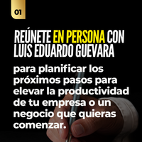 IMPORTANTE: Esta reunión será realizada en el lugar (ciudad) donde se encuentre Luis Eduardo Guevara, al cual el cliente debe dirigirse. El equipo de “El Tiburón de las Ventas” te contactará a través de un mensaje de WhatsApp, llamada o correo electrónico para confirmar previamente la cita.